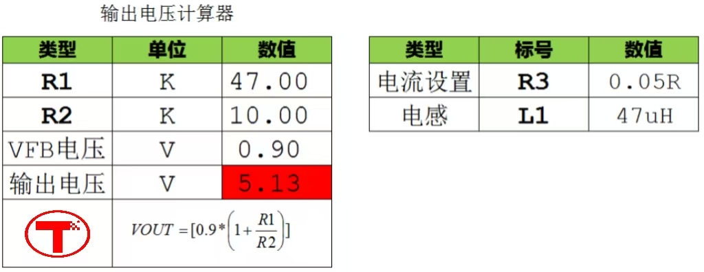 TX4150输出电压计算器: